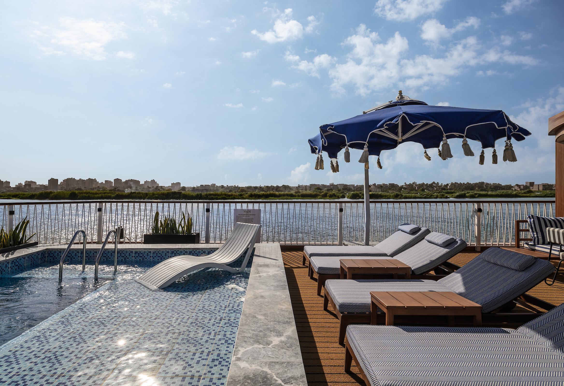 Embark on a Nile River voyage aboard the Mazaj Meroot, where the elegance of a boutique hotel meets life on the water. Indulge in lavish cabins and suites designed for ultimate comfort, complemented by all-day Egyptian cuisine, rejuvenating massages, yoga sessions, and a refreshing plunge pool. Disembark to explore Egypt’s most iconic landmarks.